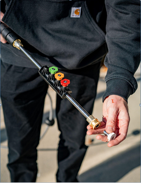 Nozzles come in different sizes, and using the wrong one can result in too much pressure on delicate wood. A 25° nozzle is recommended for wood decks because it strikes a good balance between pressure and surface protection.
