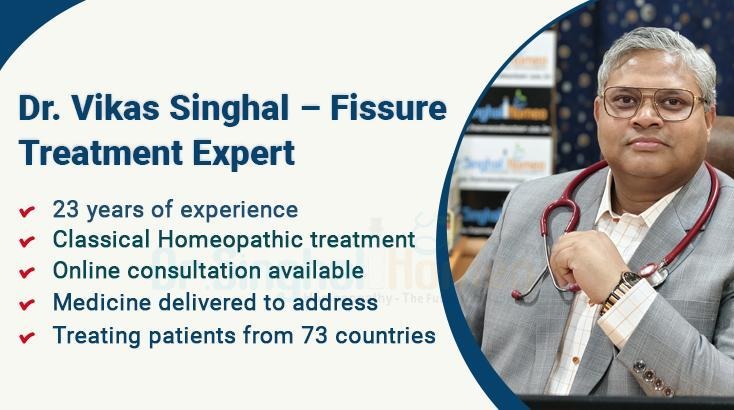 Ans: Dr. Vikas Singhal, with 23 years of experience and patients in 73 countries, is considered among the best doctors for fissure treatment.